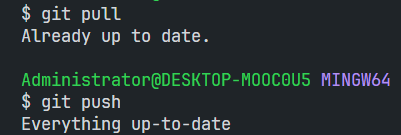 接下来就回到git仓库使用pull或者push命令测试一下