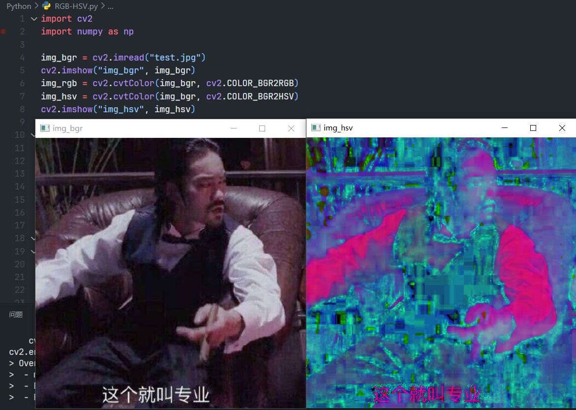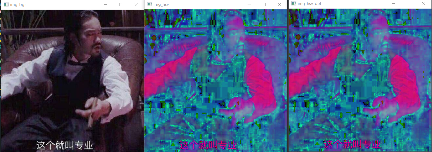效果如下,注意img_hsv_def是自己实现的hsv图